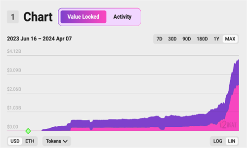 4月7日更新的L2Beat数据显示,Base的总TVL为41.5亿美元,其中包括14.5亿美元规范桥接价值(即在以太坊上锁定以在Base上代表的资产)和27亿美元的本地铸造资产。