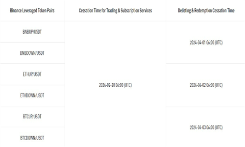 加密交易所将在 2 月 28 日 06:00 UTC(协调世界时)暂停这三对杠杆代币的交易和订阅服务。据 Binance 称,所有关于这些杠杆代币的交易订单都将在设定的日期“自动删除”。这意味着用户将无法从该时间起放置任何订单。Binance 敦促其用户在设定的截止日期之前,将其持有的杠杆代币交易为其他资产。