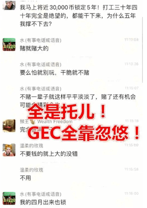 gec环保币本质就是一种拉人头的货币形式,可以说就是一种庞氏骗局,当拉不到足够的人以后,那自然就会崩盘,无法再维持原先价格的,后续接盘的人全部得亏本。庞氏骗局很多人可能还不怎么明白,二战时期的美国人庞兹骗局搞了一个先投资后收益的集资活动,说是三个月有40%的收益率,可其实就是用三个月后续的投资的人的本金做前期投资人的收益。如果能维持一直拉人,保持增长,那前面的人永远能赚取到后面的人的本金,当后续没有足够的人来接盘时,就会爆雷。最后面投资的那一批人的本金是无法未收回的,成为了前人的收益。Gec环保币也是这种模式,用后续的人的本金给前面的人赚钱,当盘子无法维持之时,就会出现暴跌这种情况。