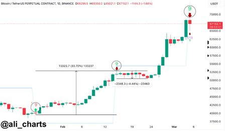 在技术分析方面,一些独立分析师观察到,比特币的每日图表上出现了销售信号。TD序列指标显示,交易员们应密切关注价格走势,以警惕可能的暴跌风险。这一指标自年初以来在预测比特币走势方面表现良好,曾成功预示了1月初的买入机会以及2月中旬的抛售信号。