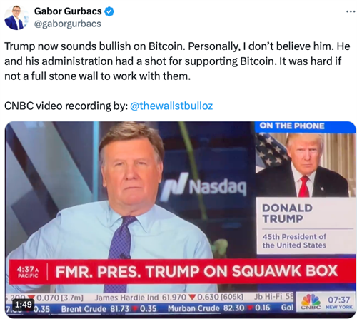 在3月11日接受CNBC采访时,美国前总统唐纳德·川建国对比特币和加密货币表达了积极态度,暗示如果他再次入主白宫,可能会对这类数字资产采取更加友好的政策。