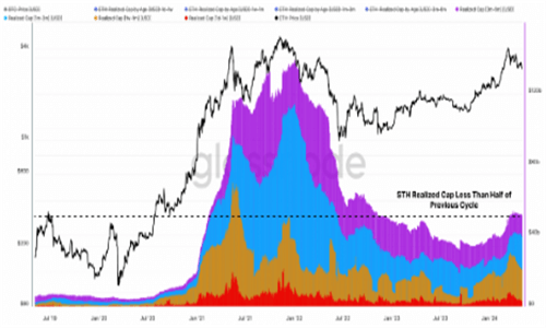 Glassnode的分析师们总结说,尽管减半后的市场走势与之前的周期非常相似,但一些数据点表明以太坊相对于比特币表现不佳。然而,他们仍然对市场整体的宏观上升趋势持乐观态度,并认为以太坊的前景仍然充满希望。他们解释说:“当我们分解比特币和以太坊之间的资本流动和轮换时,我们可以看到比特币获得了最大份额的流入这可能部分是由美国现货ETF推动的。到目前为止短期持有者和投机活动似乎集中在比特币内而对以太坊的溢出效应非常微弱。”