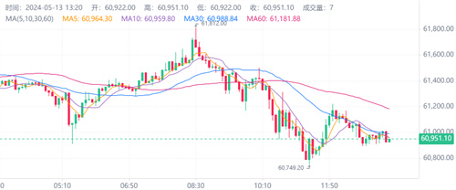 比特币价格从6.2万美元的阻力区开始新一轮下跌。比特币正在下跌,在6万美元以下仍有更多损失的风险。截止5月13日比特币最新价格为 61115.63美元/枚,折合人民币 43.61万元/枚。