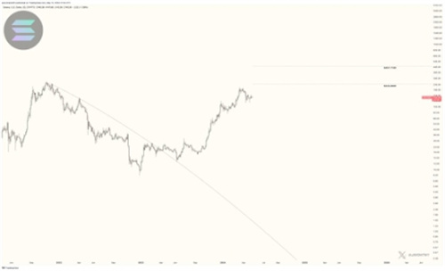 马克斯在X(以前的Twitter)的一篇文章中提到,尽管索拉纳的价格最近有所回落,但它的价格可能会再次上涨。他指出,超过54%的涨幅可能已经在准备之中,这样的价格波动可能会为超过93%的涨幅开辟空间,届时索拉纳将达到453美元。