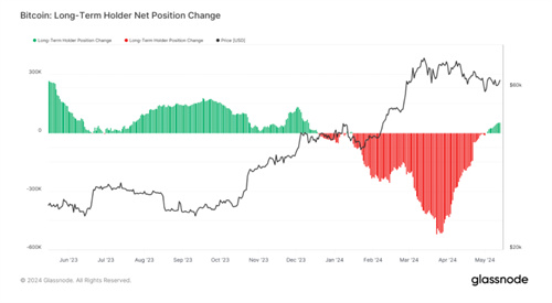 Glassnode的最新5月16日数据显示,比特币长期持有者正在利用比特币较低的价格大幅增持比特币。这种积累进一步增强了这群比特币投资者的信念,即尽管比特币最近波动很大,但他们仍预计比特币可能会上涨。