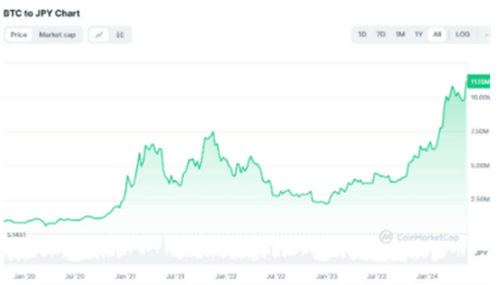 值得注意的是,这次价格飙升不仅让比特币在美元计价上接近历史高点,更在多个亚洲和南美国家创下了新的历史新高。据全球数字货币市值排名网站CoinMarketCap的数据,在日本,比特币在5月21日早盘交易中价值一举突破1100万日元,达到了1120万日元的新高。这也是比特币首次在日本市场价值超过1100万日元,具有里程碑意义。由于近几个月来日元兑美元汇率持续走弱,自1月份以来已下跌10%,因此比特币的这一涨势在日本市场引起了广泛关注。