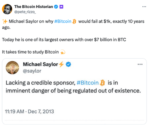 Saylor因其在比特币领域的大额投资和积极推广,已成为加密货币圈内的知名人物,并经常受邀出席行业研讨会。值得一提的是,他并非比特币的早期投资者。2020年,他才在社交媒体上宣布以1.75亿美元个人购入17732个比特币,从而开启了他的比特币亿万富翁之路。而在此之前,他对比特币的态度更为保守,甚至曾在2013年表示,比特币因缺乏有力支持而面临被监管淘汰的风险。如今,他已成为比特币的坚定拥护者。