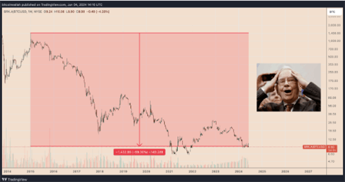 回顾过去几年,自2015年以来,伯克希尔·哈撒韦的股价在与比特币的对比中,价值竟然下跌了近100%——从原本可兑换约1000个比特币,到现在仅相当于9.15个比特币。这一巨大的价值落差,无疑让市场对比特币的投资价值有了更深刻的认识。