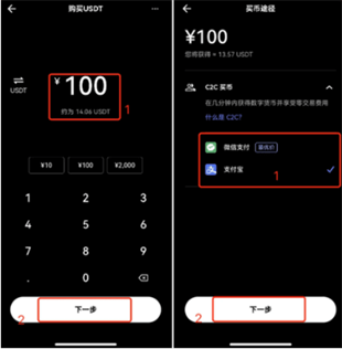 2.进入下一页面后,输入你计划购买的金额,并点击“下一步”进行确认。在这一步,你还需要选择你偏好的支付方式。